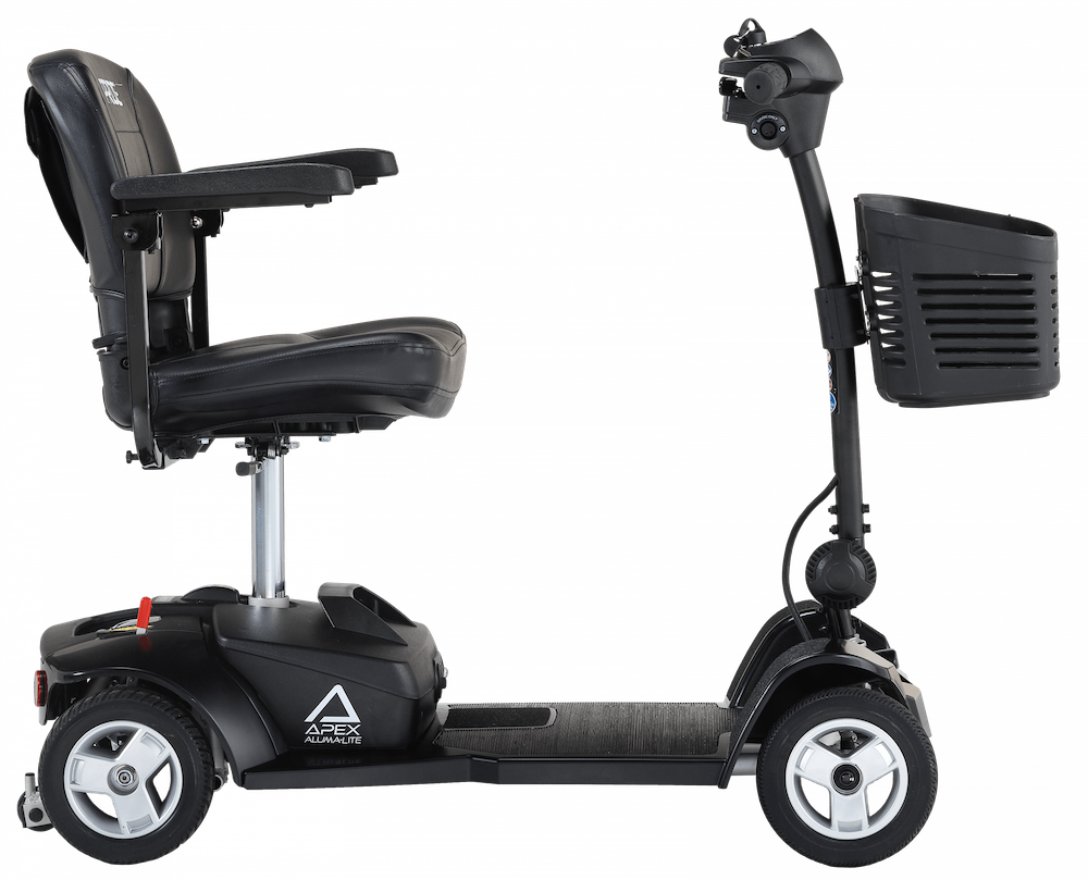 Experience the convenience of a lightweight, compact travel scooter. Easy to put into the boot of your car, with its heaviest part weighing only 11.2 kg. The Apex Alumalite, with its aluminium frame, weighs only 28.8 kg, making it our lightest four-wheeled scooter yet!